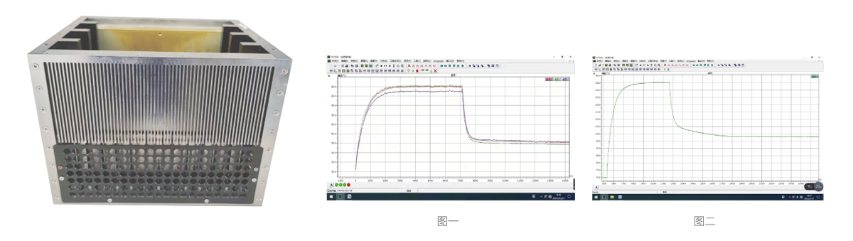 圖二: 環(huán)境溫度70℃,機(jī)箱內(nèi)部器件發(fā)熱功率70W滿(mǎn)功率運(yùn)行,器件溫度升至136℃,打開(kāi)壓電平面風(fēng)扇( 型號(hào)為YDFS-J12Z10 ),器件溫度降至97℃。